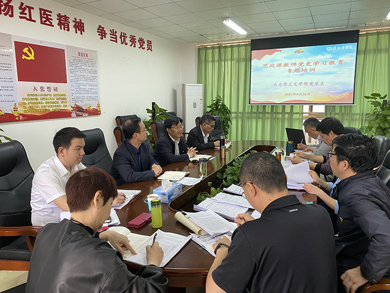 为庆祝建党100周年,学好百年党史,传承红色基因。近日,马克思主义学院组织全体党员和思政课教师开展党史教育专题培训活动。学校党委委员、宣传部部长廖志平出席。