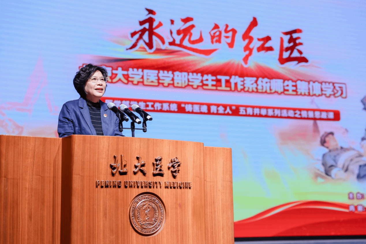 北京大学医学部党委副书记朱树梅出席活动并致欢迎辞,对我校师生的到来表示热烈欢迎,高度评价我校深入挖掘红色卫生史资源、创新思政育人模式的探索与实践,并特别指出,我校情景思政课中的红医先驱、红色医疗卫生事业的重要奠基人——贺诚同志,正是北大医学部(原北京医学专门学校)的早期校友和北医第一位共产党员。她表示,这堂讲述贺诚等红医先辈事迹的课程“回到”他的母校,是一次意义非凡的“寻根”与“溯源”,是红色血脉的赓续与医学初心的对话。
