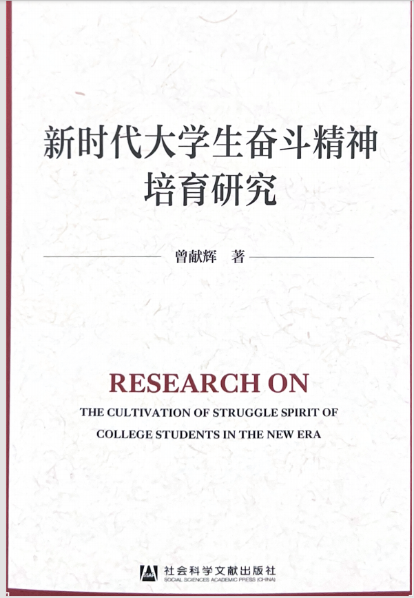 曾献辉博士在国家级出版社《社会科学文献出版社》出版“新时代大学生奋斗精神培育研究”的学术著作。通读该著作,可以发现其按照将历史逻辑与辩证逻辑相结合的研究范式,理论阐释了大学生奋斗精神培育的相关概念。系统梳理了马克思主义经典作家关于奋斗精神培育的思想,中华优秀传统文化中蕴含的奋斗思想,以及党的历代领导人关于奋斗精神培育思想的相关论述,为研究奠定论证基础。以中国共产党不同历史时期对青年一代开展奋斗精神培育探索的历史经验,为研究提供实践价值和重要经验。通过调查研究,实证分析当代大学生奋斗精神培育的成效、现实困境和存在问题的原因,结合问题进行深层探析。在理论阐述和调查分析基础上,提出大学生奋斗精神培育应遵循“四个相结合”原则;路径上探索构建由个人、家庭、高校、社会等层面组成的“四位一体”协同培育体系,以增强大学生奋斗精神培育实效,提升大学生的奋斗精神,引导大学生立鸿鹄志、做奋斗者,矢志奋斗的建功新时代。